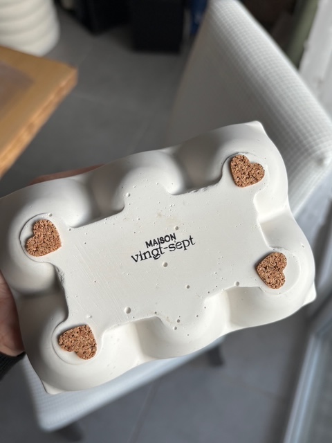 Chaque pièce est unique : façonnée à la main, elle porte en elle les traces de l’artisanat, quelques irrégularités ou bulles d’air peuvent être présentes, marques d’un produit authentique, réalisé avec soin et passion.